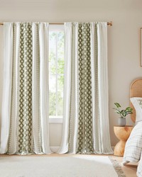 The INK+IVY Imani Cotton Printed Window Panel with Chenille Stripe and Lining offers a chic and casual update to your home. This window panel features a geometric print with a tufted chenille stripe trim, for a textured artisanal look and feel. A lightweight white cotton lining on the reverse softly filters light, while providing better drapability and added privacy. In addtition, this 100% cotton curtain panel is also OEKO-TEX certified, meaning it does not contain any harmful substances or chemicals for the best in quality comfort and wellness. Each panel is finished with a rod pocket top for easy hanging, and back tabs for a more clean and tailored finish. This window panel is sold as a single and 2 window panels must be purchased to cover any standard size window. Complete the look with coordinating bedding sets and bath decor, available and sold separately.