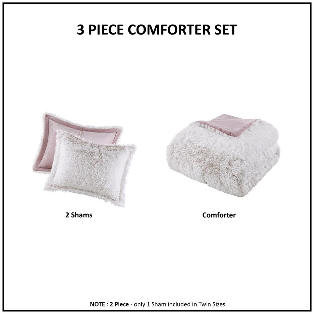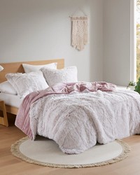 Malea Pink/White Shaggy Faux Fur Comforter Mini Set Twin