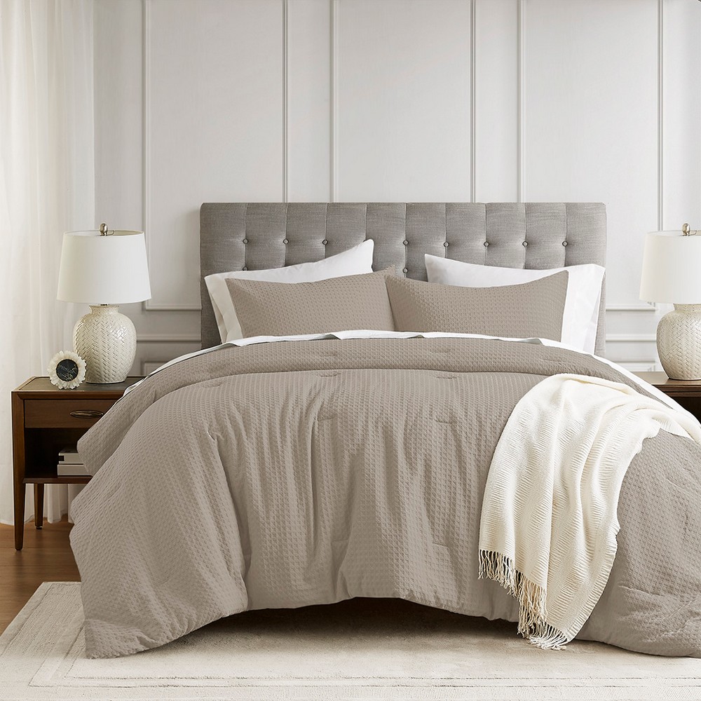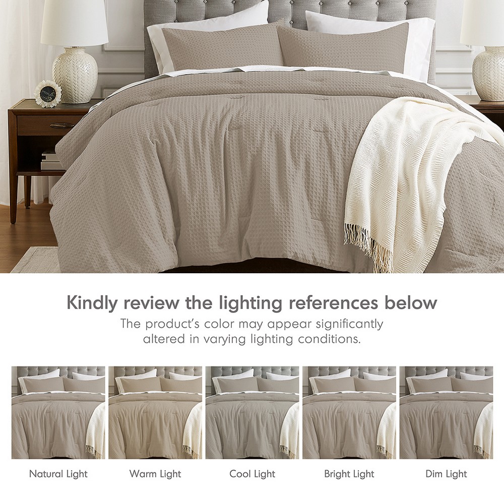 Mina Neutral Waffle Weave Textured Comforter Set King