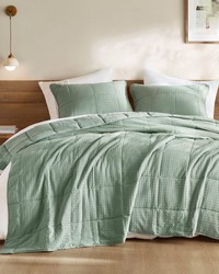 | Comfort Spaces King/Cal King 1 Quilt: 104"W x 90"L 2 Shams: 20"W x 36"L + 2"D (2) Quilt/Sham; 100% polyester waffle woven face, polyester fill. 8"quilting grid size Modern/Contemporary Style Includes 3 Piece(s) Machine Washable Modernize your bedroom with our elegantly chic bedding set, showcasing a quilted pattern in an upgraded waffle-like woven texture. This unique take on a classic design combines lightweight fabric with exceptional breathability and comfort, providing a delightfully soft and fluffy feeling all year round. Additionally, this set holds an Oeko-Tex certification, ensuring our dedication to safety and gentle, non-irritating skin contact. Meticulously crafted, our modern quilt adds gentle yet stylish enhancements to your sleep experience. |