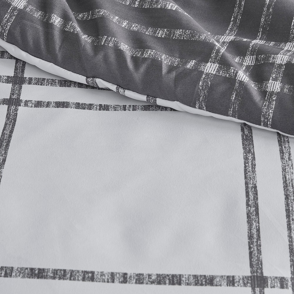 Pike White/Gray Plaid Reversible Comforter Set Twin