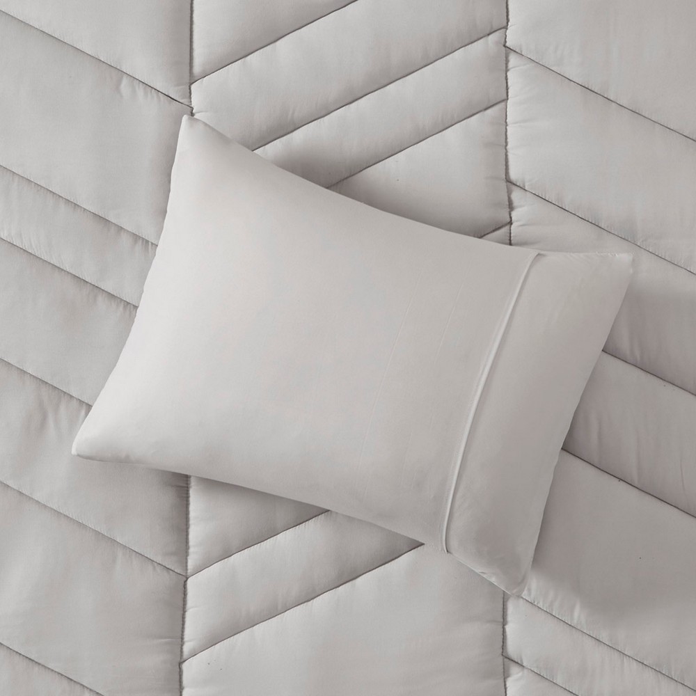 Remy Gray Quilted Chevron Comforter Set Queen