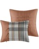| Intelligent Design Full/Queen 1 Comforter: 90"W x 90"L 2 Standard Shams: 20"W x 26"L + 1"D (2) 1 Square Throw Pillow: 16"W x 16"L 1 Oblong Throw Pillow: 12"W x 16"L Comforter/Sham: 100% polyester microfiber print, microfiber solid reverse. Anti-microbial treatment. Filling: 100% polyester Pillow: Microfiber cover, polyester fill Casual Style Includes 5 Piece(s) Machine wash cold separately, gentle cycle. Do not bleach. Tumble dry low. Steam Iron Only. If there is no free movement in washer/dryer, use large capacity commercial washer/dryer. Spot clean pillows. Refresh your bedroom with this vintage plaid comforter set for a classic style. Matching shams (1 in Twin/Twin XL) coordinate with the comforter, while 2 decorative pillows featuring fabric manipulation and tie closure details complete the bedding set. The comforter and pillows are filled with hypoallergenic polyester that contains no allergens and are dust proof, so you can sleep comfortably. This machine washable bedding set is OEKO-TEX certified and also has an antimicrobial treatment that inhibits bacteria growth to keep the bedding fresher for longer. |