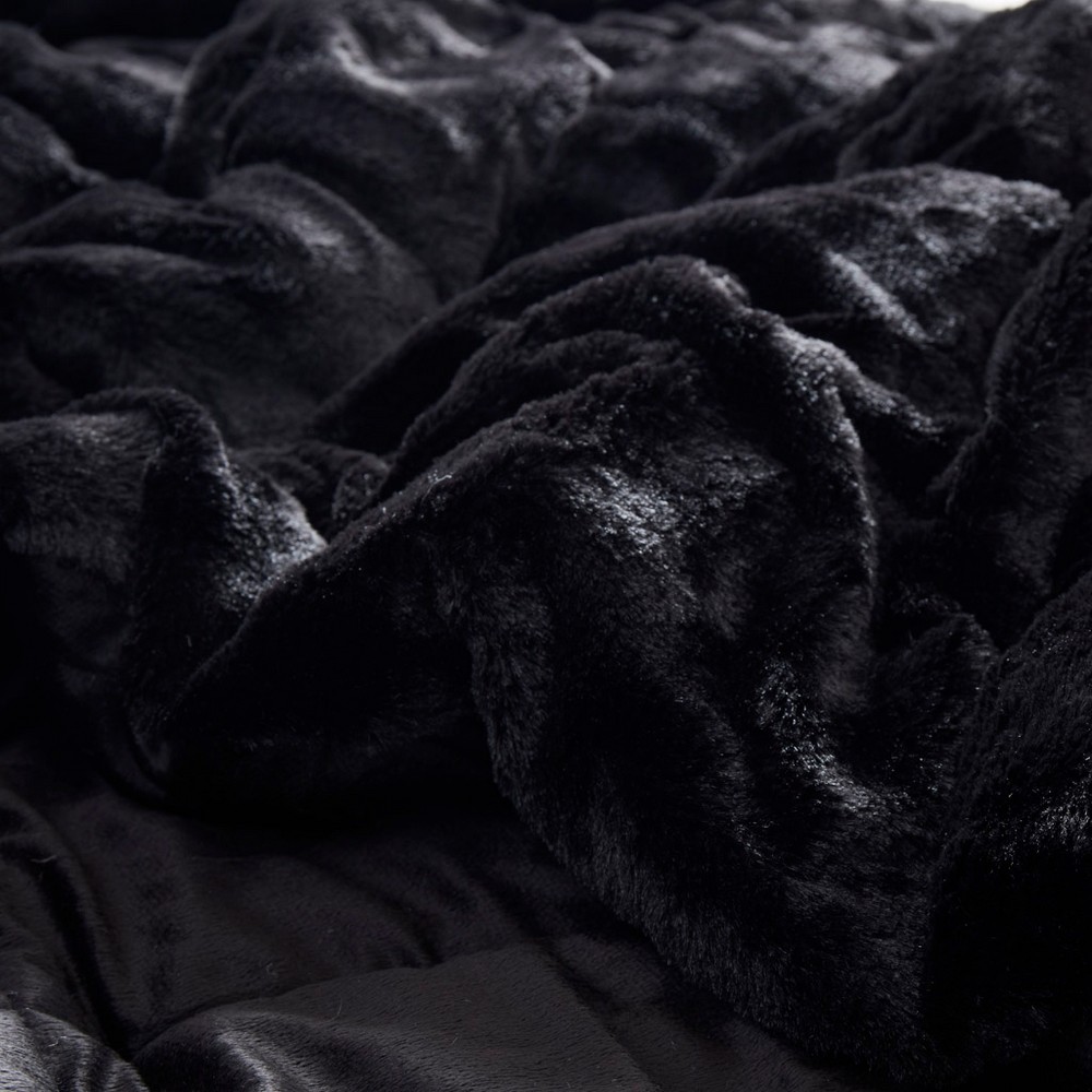 Gia Black Solid Faux Fur Comforter Mini Set Twin