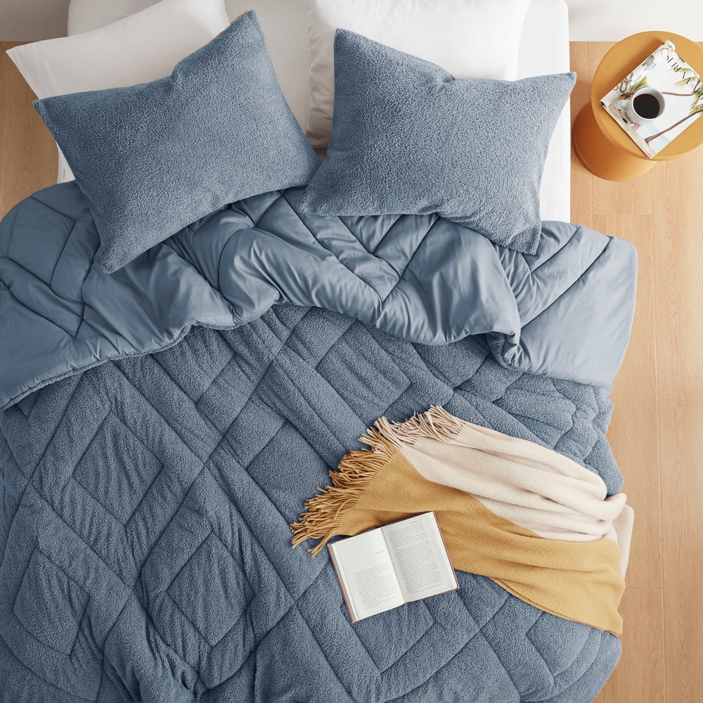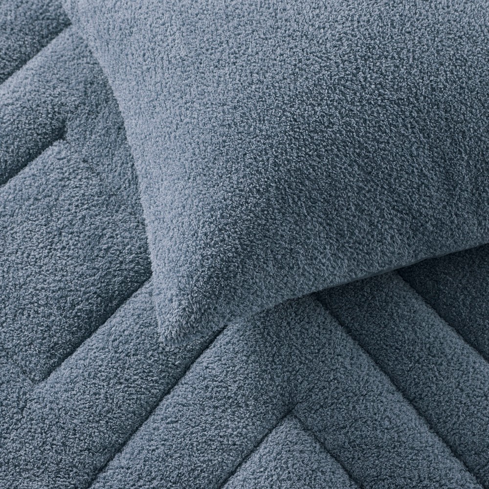 Kyla Blue Double Diamond Quilted Teddy Comforter Set Queen