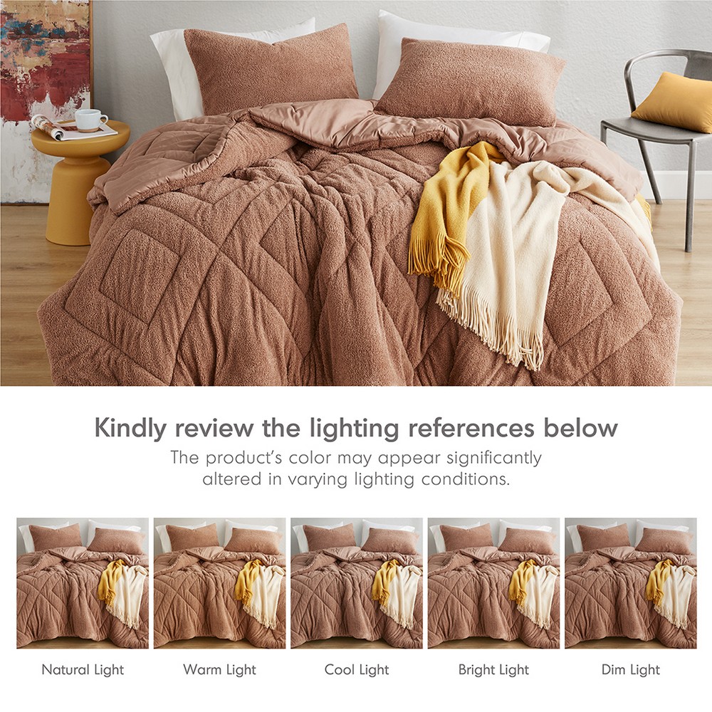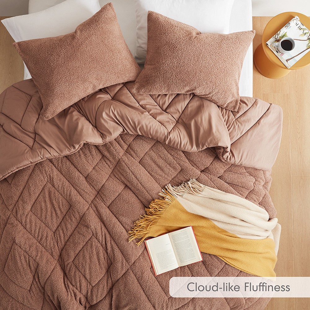 Kyla Brown Double Diamond Quilted Teddy Comforter Set Queen