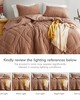 | Comfort Spaces Full/Queen 1 Comforter: 90"W x 90" L 2 Standard Shams: 20"W x 26"L (2) Comforter:180gsm Faux Feathersoft to 85gsm Microfiber; 200gsm poly fill; Double Diamond Quilting Modern/Contemporary Style Includes 3 Piece(s) Machine Wash Feel the loving embrace of our plush teddy textured bedding set, quilted in an ever-elegant double diamond pattern. Crafted with a medium-weight premium microfiber reverse, our fluffy comforter is also artfully designed to enrich any bedroom without compromising on coziness. Additionally, this set holds an Oeko-Tex certification, ensuring our dedication to safety and gentle, non-irritating skin contact. Sleep well, knowing our timeless, comfortable bedding set is here to soothe you night after night. |