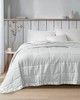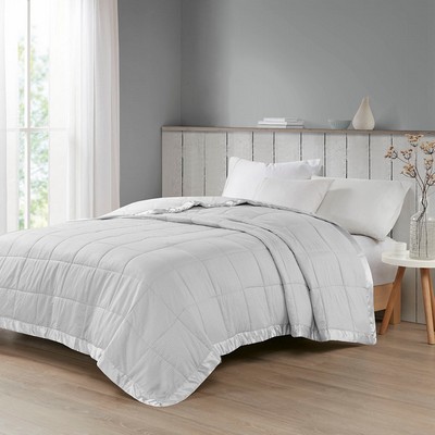 | Madison Park King 1 Blanket: 108x96" Face: solid embossed micro fiber with 3M Scotchgard repel & release treatment, 100% polyester Reverse: solid micro fiber with 3M Scotchgard repel & release treatment, 100% polyester 3" binding: 100% polyester satin Filling: 100% polyester brushed fibe Casual Style Includes 1 Piece(s) Machine wash cold, gentle cycle, and separately. Do not bleach. Tumble dry low, remove promptly. Do not iron. If there is no free movement in the washer or dryer, use large capacity commercial washer/dryer. Make every night a cozy one with this textured oversized down alternative blanket. The color-matched 3" satin trim adds a luxury element that feels great on your skin. It features a 3M Scotchgard Moisture Management Treatment that wicks away moisture while helping release stains. Machine washable for easy care with a classic box quilting design. This hypoallergenic blanket is also OEKO-TEX certified, meaning it does not contain any harmful substances or chemicals, ensuring quality comfort and wellness. |