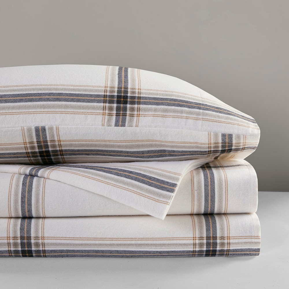 | Woolrich Cal King 1 Flat Sheet: 108"W x 102"L 1 Fitted Sheet: 72"W x 84"L + 14"D 2 King Pillowcases: 20"W x 40"L (2) 100% cotton flannel Rustic/Lodge/Cabin Style Includes 4 Piece(s) Machine Washable Stay warm and cozy through the night with this incredibly soft cotton flannel sheet set. Featuring fun novelty and classic prints, to give you a comfy update to your bedroom. Machine washable for easy care, this sheet set creates a comfortable cabin aesthetic in your bedroom. These sheets are also OEKO-TEX certified, meaning they do not contain any harmful substances or chemicals, ensuring quality comfort and wellness. Set includes: 1 Flat Sheet, 1 Fitted Sheet, and 2 Pillowcases (1 in Twin/TXL sizes). |