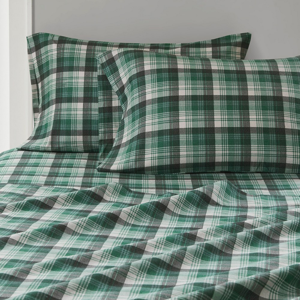 | Woolrich Cal King 1 Flat Sheet: 108"W x 102"L 1 Fitted Sheet: 72"W x 84"L + 14"D 2 King Pillowcases: 20"W x 40"L (2) 100% cotton flannel Rustic/Lodge/Cabin Style Includes 4 Piece(s) Machine Washable Stay warm and cozy through the night with this incredibly soft cotton flannel sheet set. Featuring fun novelty and classic prints, to give you a comfy update to your bedroom. Machine washable for easy care, this sheet set creates a comfortable cabin aesthetic in your bedroom. These sheets are also OEKO-TEX certified, meaning they do not contain any harmful substances or chemicals, ensuring quality comfort and wellness. Set includes: 1 Flat Sheet, 1 Fitted Sheet, and 2 Pillowcases (1 in Twin/TXL sizes). |