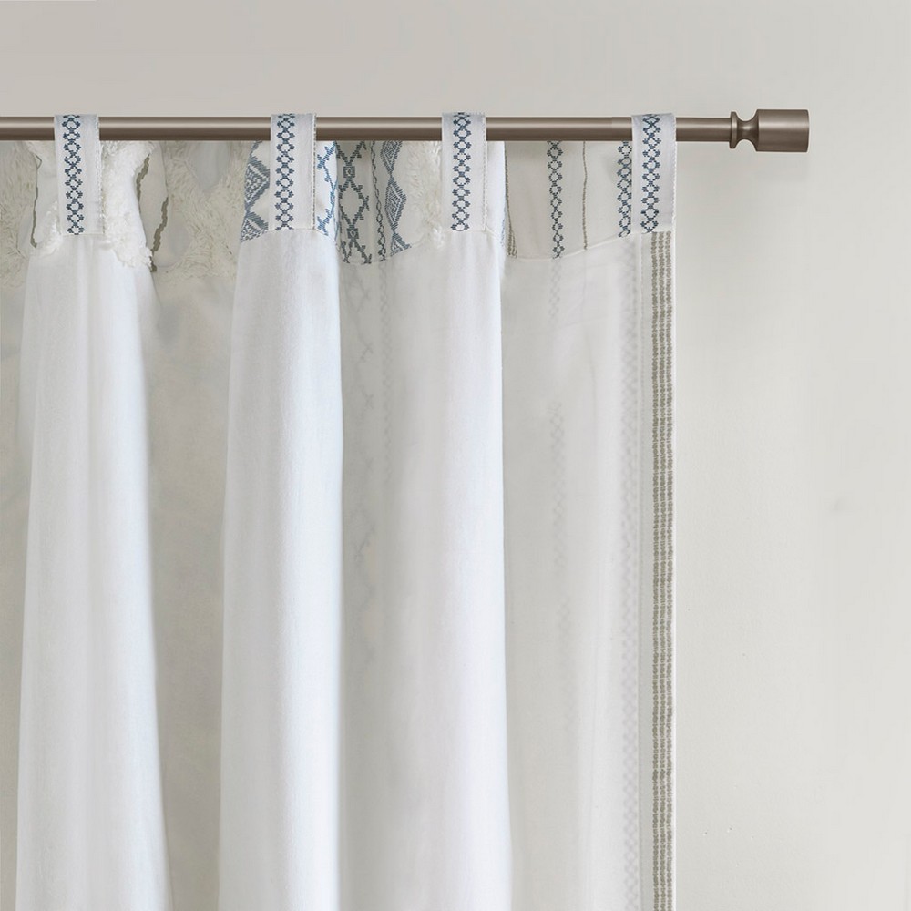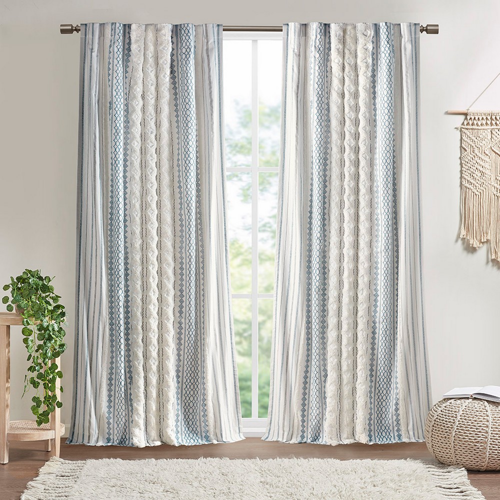 | Ink+ivy 50x108" 1 Window Panel: 50"W x 108" L 100% cotton, printed and tufted with chenille, with cotton lining on the back. Finished with rod pockets and back tabs; fits up to 1.25 inches diameter rod. Mid-Century Modern Style Includes 1 Piece(s) Machine Wash The INK+IVY Imani Cotton Printed Window Panel with Chenille Stripe and Lining offers a chic and casual update to your home. This ivory window panel features a geometric print with a tufted chenille stripe trim, for a textured artisanal look and feel. A lightweight white cotton lining on the reverse softly filters light, while providing better drapability and added privacy. In addtition, this 100% cotton curtain panel is also OEKO-TEX certified, meaning it does not contain any harmful substances or chemicals for the best in quality comfort and wellness. Each panel is finished with a rod pocket top for easy hanging, and back tabs for a more clean and tailored finish. This window panel is sold as a single and 2 window panels must be purchased to cover any standard size window. Complete the look with coordinating bedding sets and bath decor, available and sold separately. |