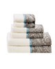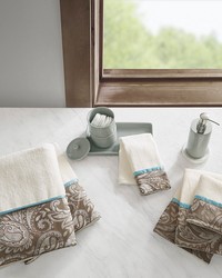 | Madison Park 6-Piece 2 Bath Towels: 27"W x 52"L (2) 2 Hand Towels: 16"W x 28"L (2) 2 Fingertip Towels: 12"W x 18"L (2) 550gsm cotton, terry Traditional Style Includes 6 Piece(s) Wash before first use. Machine wash gentle cycle with like color in cold water. Only use non-chlorine bleach when needed. Do not wash with sharp items that may pull the towel fibers, such as zippers or hooks. To maintain the quality and performance of your towels, avoid the use of fabric softeners and dry sheets. Tumble dry low, remove promptly. Cool iron if necessary. Fold towels neatly and store in a dry ventilated place. Before use, simply shake towels to restore fluff and pile. Add a sophisticated style to your bathroom with our Madison Park Aubrey 6 Piece Jacquard Towel Set. This towel set features a pieced design with a woven paisley jacquard hem, in soft blue and taupe hues, for an elegant and decorative touch. These cotton towels are also OEKO-TEX certified, meaning they do not contain any harmful substances, ensuring quality comfort and wellness. Made from 100% cotton terry, this towel set is incredibly soft, absorbent, and machine washable for easy care. Place these jacquard cotton towels in your bathroom to add the perfect finishing touches to your traditional style decor. Coordinating shower curtains and rugs are available and sold separately for a complete look. Set includes: 2 standard 27x52" bath towels, 2 standard 16x28" hand towels, and 2 standard 12x18" fingertip towels. |
