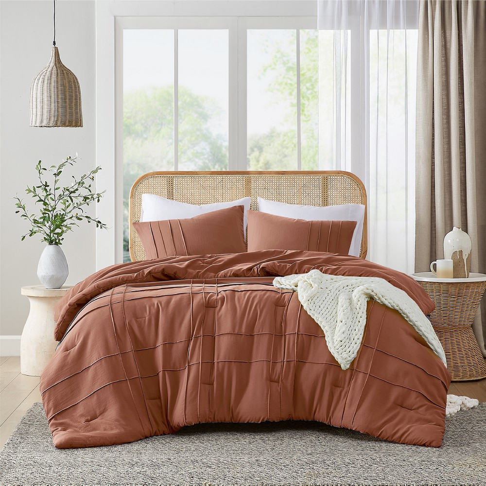 Our beautiful pinch pleat comforter with a grid pattern design strikes the perfect balance between being fluffy and lightweight. Filled with premium polyester for optimal warmth, it makes an ideal choice for year-round use. Enjoy cozy nights in the winter and refreshing breathable comfort in the summer. The pre-washed microfiber has been treated for added softness and features a clean but textured design suitable for any bedroom. Made from premium microfiber and housing our innovative dyeing technique, this comforter set can also be machine washed and is extra durable for long lasting comfort.