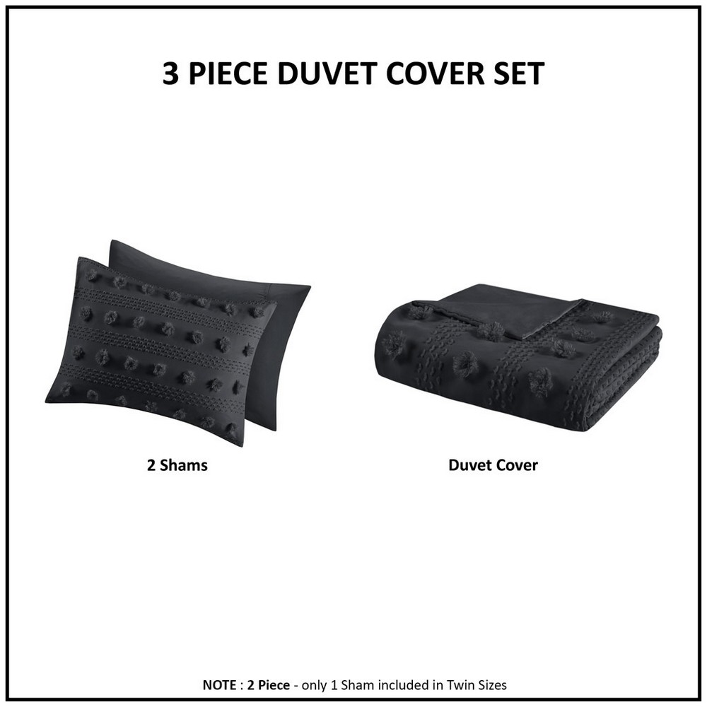 Lucy Black Clip Jacquard Duvet Cover Set Queen
