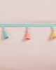 | Mi Zone Kids Twin 1 Comforter: 66"W x 86"L 1 Standard Sham: 20"W x 26"L 1 Decorative Pillow: 13"W x 13"L Comforter/Sham: 100% polyester brushed fabric, with two rows of multi color tassels on top of bed and tassels on 4 sides of shams, brushed fabric solid reverse, polyester filling; sham with overlap closure at back Pillow: 100% polyester brushed fabric, 1 Casual Style Includes 3 Piece(s) Machine wash cold separately, gentle cycle. Do not bleach. Tumble dry low. Steam Iron Only. If there is no free movement in washer/dryer, use large capacity commercial washer/dryer. Spot clean pillow. The Mi Zone Kids Tessa comforter features multi-colored tassels that add a charming detail to this bedding set. Cute and simple, the comforter offers a fun update to your kid's bedroom, while coordinating shams (1 in Twin) and a heart-shaped decorative pillow with embroidery provide an adorable finishing touch to the bedding set. The hypoallergenic polyester comforter and decorative pillow filling contains no allergens and is treated to be dustproof. Machine washable for easy care, this comforter set is sure to brighten your kid's bedroom decor. This bedding set is also OEKO-TEX certified, featuring an antimicrobial treatment, which keeps the bedding fresher longer. |