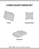 Duvet Cover/Sham face: soft brushed microfiber, printed on face with piping around three sides, solid microfiber reverse. Duvet cover with button closure and 4 corner ties. Pillow: microfiber cover and polyester fill. With anti-microbial treatment.