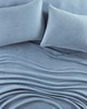 | True North By Sleep Philosophy Cal King 1 Flat Sheet: 108"W x 102"L 1 Fitted Sheet: 72"W x 84"L + 14"D 2 Pillowcases: 20"W x 40"L (2) 100% polyester microfleece Casual Style Includes 4 Piece(s) MACHINE WASH COLD, GENTLE CYCLE, AND SEPARATELY. DO NOT BLEACH. TUMBLE DRY LOW, REMOVE PROMPTLY. DO NOT IRON. IF THERE IS NO FREE MOVEMENT IN THE WASHER OR DRYER, USE LARGE CAPACITY COMMERCIAL WASHER/DRYER. A luxurious alternative to flannel, this Micro Fleece Sheet Set turns your bed into a cozy getaway. Featuring a variety of prints and solids these sheets are ultra-soft and perfect for staying warm and comfortable through the night. Machine washable for easy care. Set includes: 1 Fitted Sheet, 1 Flat Sheet, and 2 Pillowcases (or 1 Pillowcase for Twin/TXL sizes). These sheets are also OEKO-TEX certified, meaning it does not contain any harmful substances or chemicals, ensuring quality comfort and wellness. |