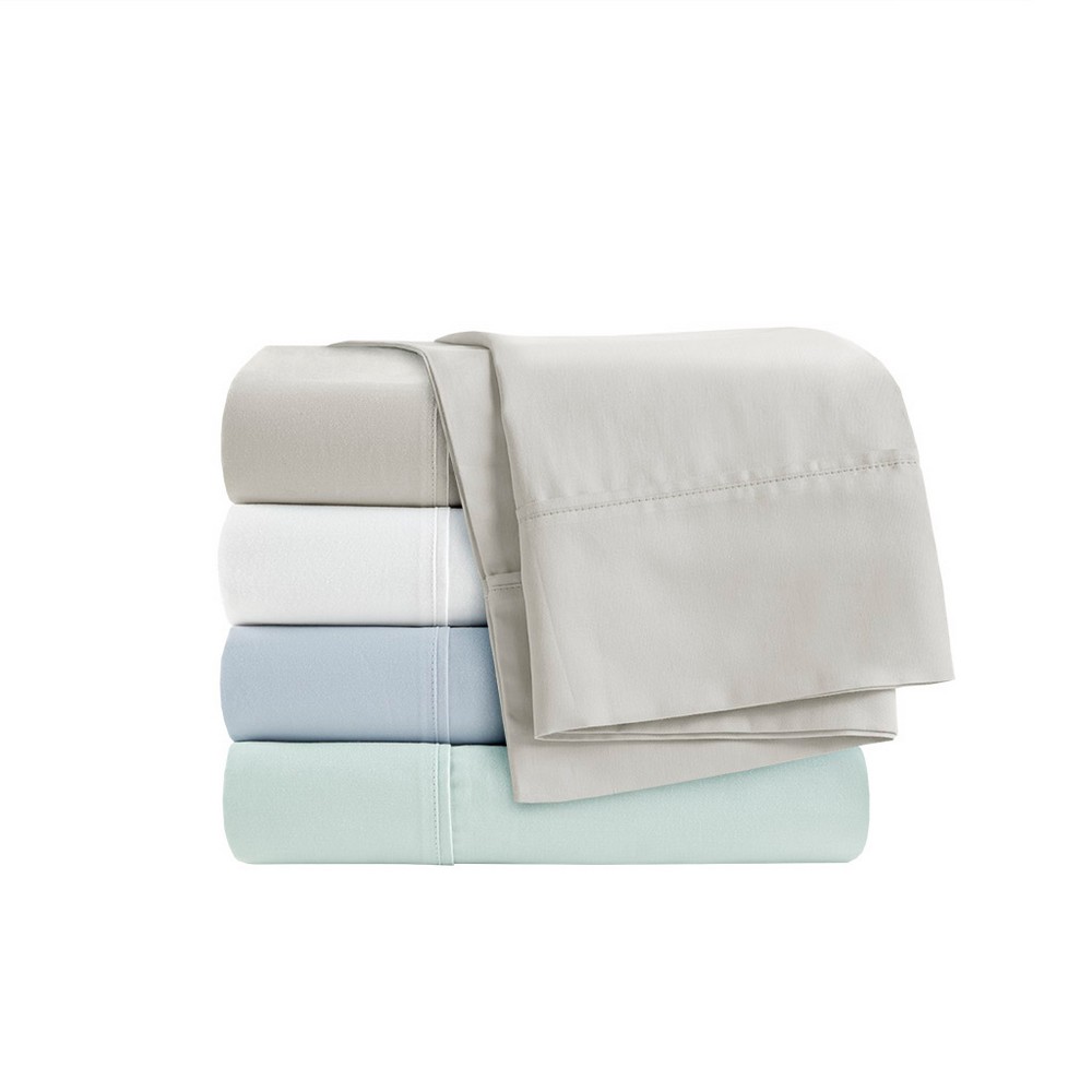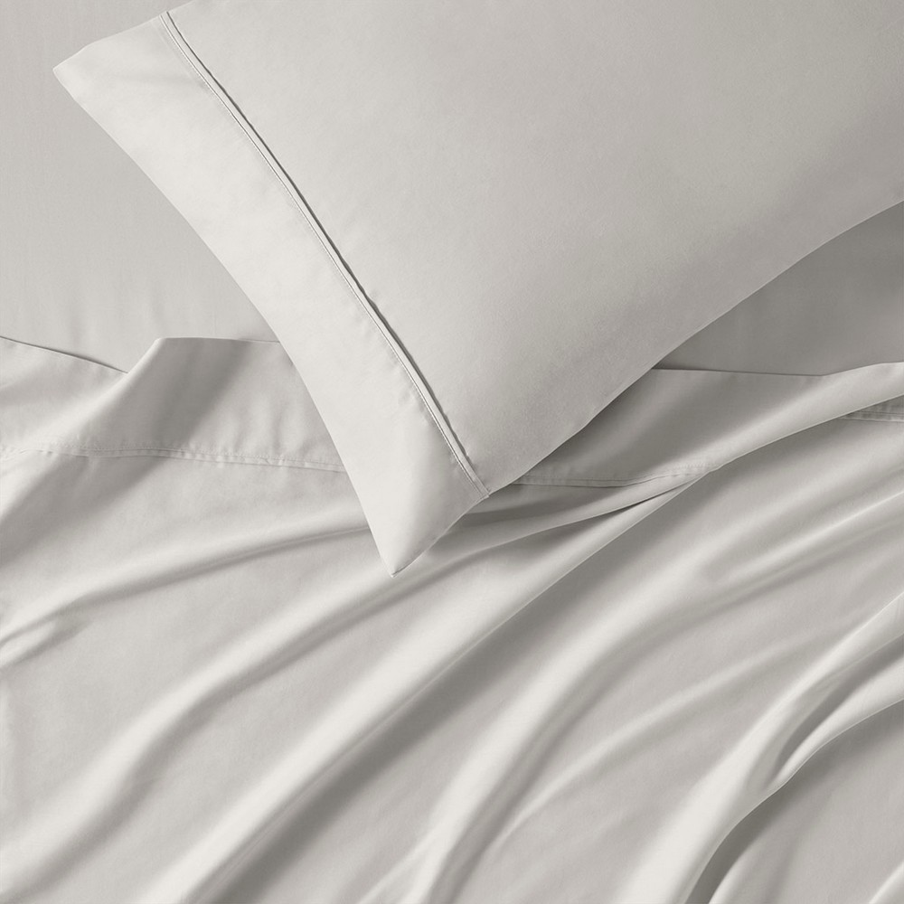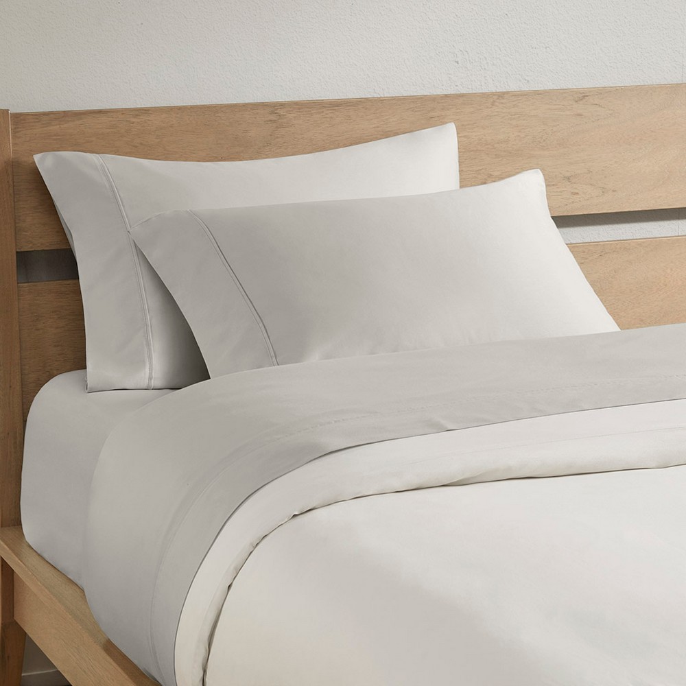| Clean Spaces Full 1 Flat Sheet: 81"W x 96"L 1 Fitted Sheet: 54"W x 75"L + 16"D 2 Queen Pillowcases: 20"W x 30"L (2) 100% BCI cotton, sateen weave Casual Style Includes 4 Piece(s) Machine wash cold with like colors. Gentle cycle. Do not bleach. Tumble dry low. Remove promptly. Warm iron if needed. The Clean Spaces 300TC BCI Cotton 4PC Sheet Set with Z Hem offers a fresh comfort to update your bedroom. This solid sheet set features a 300 thread count that provides an ultra-soft finish and a deep pocket fits up to 18-inch deep mattress. The Z-style hem stitching adds a decorative touch, while also adding durability to the seams. Partnering with the Better Cotton Initiative, these sheets are made from environmentally friendly and sustainably sourced cotton to improve not just your quality of life, but the planet's too. Machine washable for easy care, this cotton sheet set is OEKO-TEX certified, meaning it does not contain any harmful substances or chemicals to ensure quality comfort and wellness. |