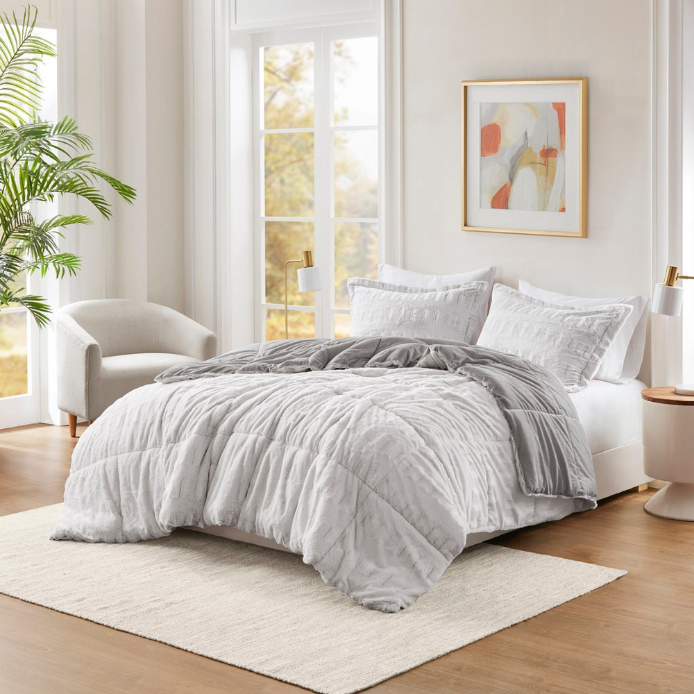 Gia Gray/White Back Print Long Fur Comforter Mini Set Twin