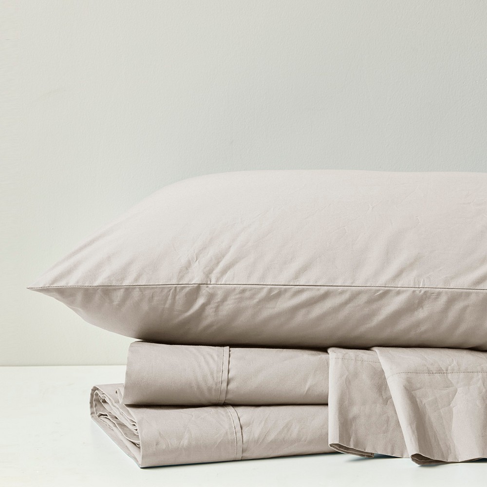 | Madison Park Cal King 1 Flat Sheet: 108"W x 102"L 2 King Pillowcases: 20"W x 40"L (2) 1 Fitted Sheet: 72"W x 84"L + 15"D 100% Cotton percale Casual Style Includes 4 Piece(s) Machine Washable Sleep in year-round breathable comfort with these relaxed cotton sheet sets. These sheets have been lightly brushed for an ultra-soft feel. The percale weave combined with the cotton makes this the perfect sheet if you're looking for a cooler and airy good night's sleep. These sheets are also hypoallergenic and machine washable for easy care. |