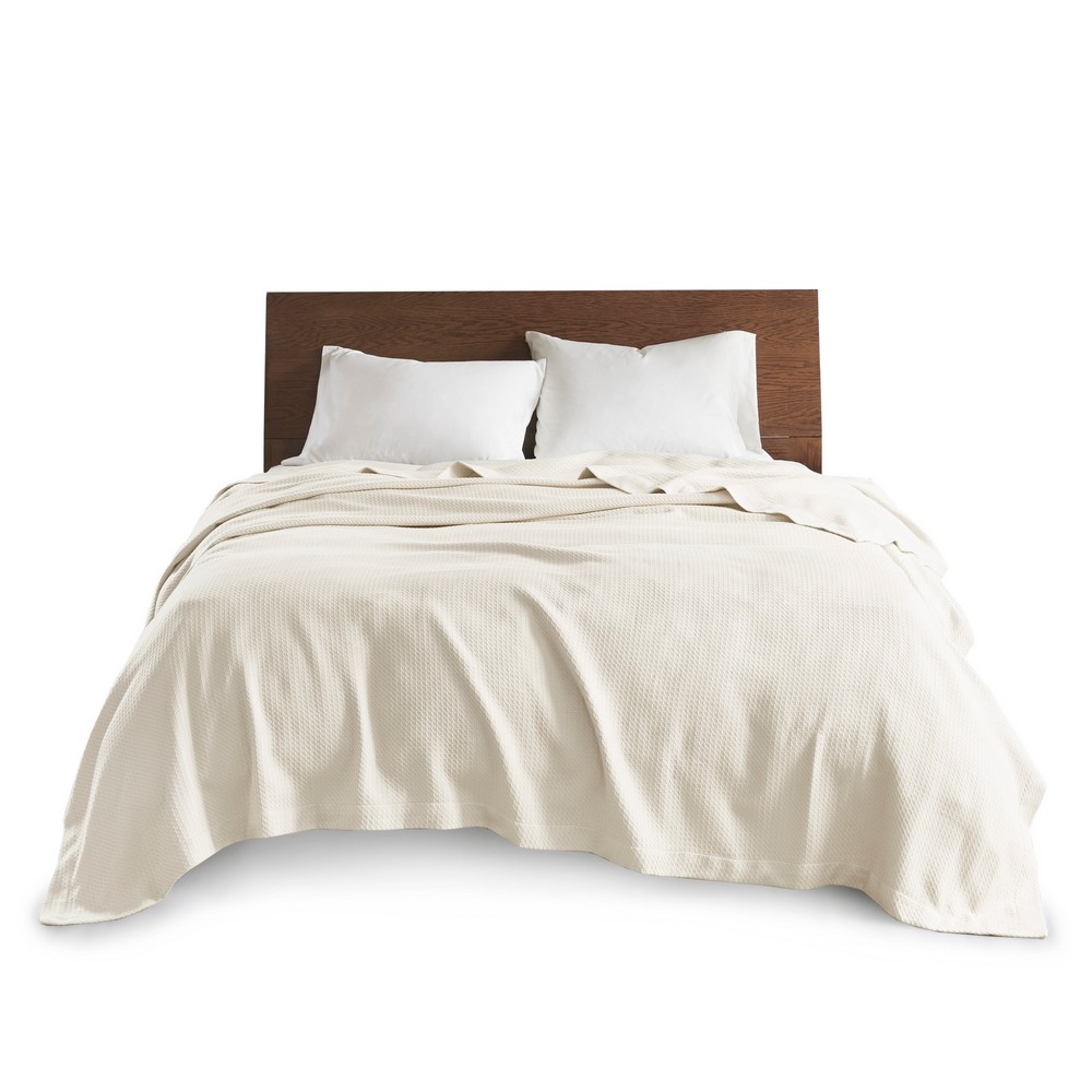 | Madison Park Full/Queen 1 Blanket: 90"W x 90"L 100% Certified Egyptian Cotton Casual Style Includes 1 Piece(s) Machine wash Wrap yourself up in the luxurious comfort of the Madison Park Egyptian Cotton Blanket. This ultra-soft ivory blanket in made from 100% certified Egyptian cotton that features reduced shrinkage, pilling, and snagging, for a durable and comfortable feel. The solid pattern of the blanket makes it easy to match with your existing casual décor. Machine washable this Egyptian cotton blanket is perfect for lying across your bed or sofa to keep warm and cozy all year round. |