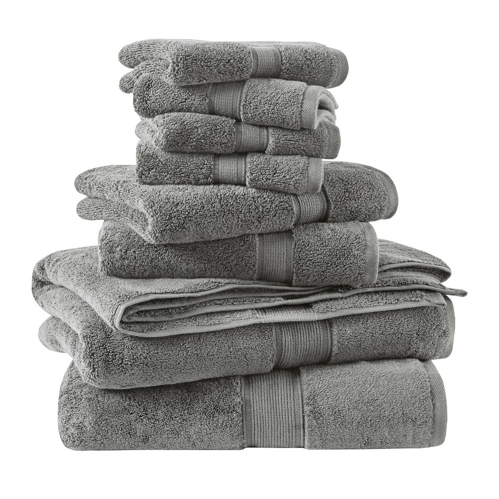 | Madison Park Signature 8-Piece 2 Bath Towels: 30"W x 54"L (2) 2 Hand Towels: 16"W x 28"L (2) 4 Wash Towels: 13"W x 13"L (4) 100% cotton Transitional Modern Style Includes 8 Piece(s) Wash before first use. Machine wash cold on gentle cycle with like colors. Only use non-chlorine bleach when needed. Avoid contact with products containing benzoyl peroxide. Do not wash with sharp items that may pull the towel fibers, such as zippers or hooks. To maintain the quality and performance of your towels, avoid the use of fabric softeners and dry sheets. Tumble dry low, remove promptly. Do not iron. Before use, simply shake towels to restore fluff and pile. Elevate your cleaning routine with our 800GSM 100% cotton towel set, boasting a highly absorbent, plush texture. Constructed with durable double-ply loops made from thick long-staple cotton using the zero twist technique, these premium towels minimize lint and provide lasting freshness thanks to their antimicrobial treatment for a seamless bathroom experience. Additionally, this set holds an Oeko-Tex Certification, demonstrating our dedication to safety and ensuring gentle, non-irritating skin contact. Available in a variety of colors, our towels offer a superior texture and bring a spa-like experience with you wherever you go. |