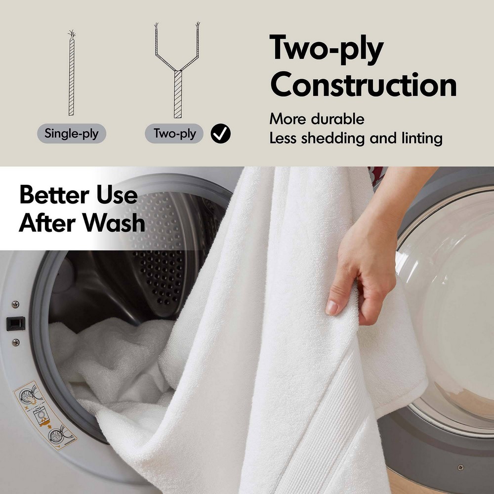 Elevate your cleaning routine with our 800GSM 100% cotton towel set, boasting a highly absorbent, plush texture. Constructed with durable double-ply loops made from thick long-staple cotton using the zero twist technique, these premium towels minimize lint and provide lasting freshness thanks to their antimicrobial treatment for a seamless bathroom experience. Additionally, this set holds an Oeko-Tex Certification, demonstrating our dedication to safety and ensuring gentle, non-irritating skin contact. Available in a variety of colors, our towels offer a superior texture and bring a spa-like experience with you wherever you go.