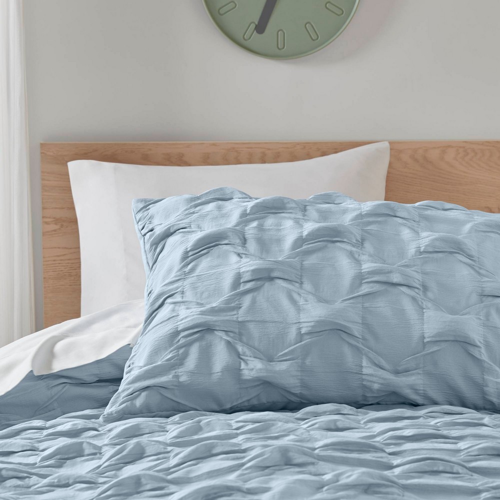Bailey Blue Diamond Pucker Woven Comforter Set Queen