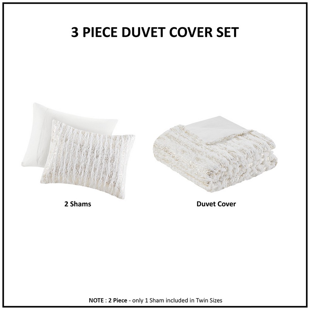 Naomi White/Gold Metallic Print Faux Fur Duvet Cover Set Queen