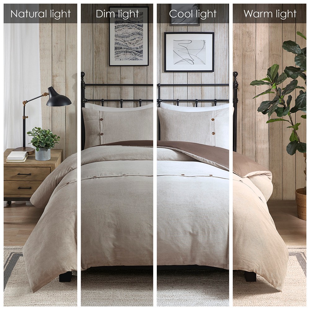 Andes Tan 3 Piece Corduroy Duvet Cover Set Queen