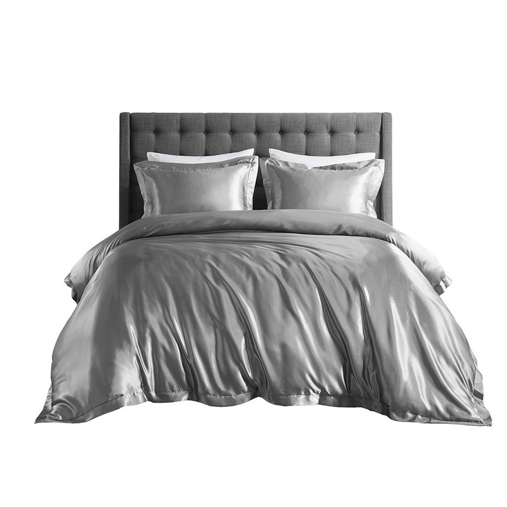 | Duvet Cover/Shams: 100% polyester satin Comfoter Insert: 100% polyester microfiber shell, 100% poly |