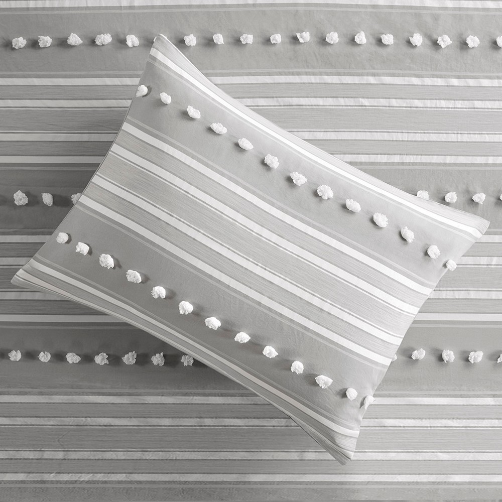 Rowan Grey Striped Clipped Jacquard Comforter Set Queen