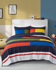 | Urban Habitat Kids Twin 1 Quilt: 68"W x 88"L 1 Standard Sham: 20"W x 26"L Quilt/Sham Front: 100% cotton digital printed, cotton reverse dyed. Filling: 90% cotton, 10% olefin. Pre-washed pattern is 2" channel quilted. Casual Style Includes 2 Piece(s) Machine wash cold separately, gentle cycle. Do not bleach. Tumble dry low. Do not iron. If there is no free movement in washer/dryer, use large capacity commercial washer/dryer. The Urban Habitat Kids Morris Quilt features a colorblock striped print that will brighten up your kid's bedroom. This cotton quilt set brings a fun and playful style to their space, while the matching shams (1 for Twin) feature a different printed pattern that complements the quilt to provide the finishing touches to this kid’s bedding set. Cotton filling, in the quilt, provides maximum comfort and the prewashed fabric helps avoid further shrinkage. Machine washable for easy care, this quilt set is also OEKO-TEX certified, featuring an antimicrobial treatment, which keeps the bedding fresher longer. |