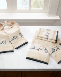 | Madison Park See below 2 Bath Towels: 27"W x 52"L (2) 2 Hand Towels: 16"W x 28"L (2) 2 Fingertip Towels: 12"W x 18"L (2) 550gsm cotton jacquard Coastal/Nautical Style Includes 1 Piece(s) Wash before first use. Machine wash gentle cycle with like color in cold water. Only use non-chlorine bleach when needed. Do not wash with sharp items that may pull the towel fibers, such as zippers or hooks. To maintain the quality and performance of your towels, avoid the use of fabric softeners and dry sheets. Tumble dry low, remove promptly. Cool iron if necessary. Fold towels neatly and store in a dry ventilated place. Before use, simply shake towels to restore fluff and pile. Complete the beach look of your bathroom our Madison Park Bayside Embroidered Cotton Jacquard 6 Piece Towel Set. This solid natural textured jacquard towel set features a stylish hem highlighted by an embroidered coastal motif of blue sea shells and starfish, creating a charming seaside design. Made from 100% cotton, this decorative towel set adds the perfect nautical touch to your bathroom décor and is machine washable making cleaning a breeze. Set includes: 2 standard 27x52" bath towels, 2 standard 16x28" hand towels, and 2 standard 12x18" fingertip towels. |