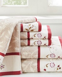 Add a touch of elegance to your bathroom decor with our Madison Park Serene Embroidered Cotton Jacquard 6 Piece Towel Set. These cotton towels feature a jacquard leaf pattern with a floral embroidered hem, and red contrast piping details to create a beautiful and sophisticated look. This cotton towel set is also OEKO-TEX certified (Made in Green), meaning it does not contain any harmful substances or chemicals, ensuring quality comfort and wellness. Highly absorbent and incredibly soft from its medium weight terry loop construction, this towel set is also machine washable for easy care for the perfect addition to any bathroom. Set includes: 2 standard 27x52" bath towels, 2 standard 16x28" hand towels, and 2 standard 12x18" fingertip towels.
