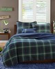 | Mi Zone Twin/Twin XL 1 Quilt: 68“W x 90"L 1 Standard Sham: 20"W x 26"L (1) 1 Decorative Pillow: 12"W x 18"L Quilt/Sham: 100% polyester microfiber, printed, microfiber solid reverse, 240gsm cotton fill Pillow: polyester cover and polyester fill Casual Style Includes 3 Piece(s) Machine Wash Cold, gentle cycle, and separately. Do not bleach. Tumble Dry Low, remove promptly, do not iron. If there is no free movement in the washer or dryer, use large capacity commercial washer/dryer. Add a sophisticated style to your bedroom with the Mi Zone Brody Reversible Quilt Set. This quilt and 2 shams (1 in Twin/TwinXL) features a blue and green plaid pattern with a solid blue reverse, creating a handsome cabin-inspired look. The quilted filling is pre-washed cotton for maximum comfort and durability. Completing this plaid quilt is 1 oblong decorative pillow that pairs perfectly with the top of the bed. Machine washable for easy care, this reversible quilt set uses an antimicrobial treatment that provides built-in freshness protection, reducing the growth of odor causing bacteria to keep fabric lasting longer. Items in the set may come in a rolled or compressed packaging, which will need to be fluffed up or steam ironed before use to remove wrinkles. |
