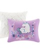 | Urban Habitat Kids Twin 1 Duvet Cover: 68"W x 88"L 1 Standard Sham: 20"W x 26"L + 1"D 1 Decorative Pillow: 16"W x 16"L 1 Decorative Pillow: 12"W x 16"L Duvet/Sham: Cotton printed fabric on face, cotton solid reverse. Duvet with button closure and corner ties. Pillow: Cotton shell and polyester filling Casual Style Includes 4 Piece(s) Machine Wash, Spot Clean Pillows Add a touch of whimsy to your child’s bedroom with the Urban Habitat Kids Lola Unicorn Cotton Duvet Cover Set. Adorable unicorns prance across the top of the duvet cover and matching shams (1 for Twin Sizes) in bright colors. The solid reverse highlights the fun print on the duvet cover, making it pop! Two decorative pillows featuring pleating details and an applique unicorn provide a magical finishing touch. Machine washable for easy care, this bedding set is also OEKO-TEX certified, meaning it does not contain any harmful substances or chemicals, and uses an antimicrobial treatment that provides built-in freshness protection, reducing the growth of odor causing bacteria to keep fabric lasting longer. A button closure allows you to place a comforter insert within the duvet cover and four internal corner ties help prevent it from shifting (insert NOT included). |