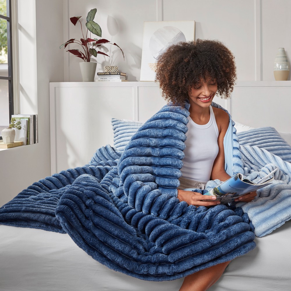 Avril Blue Ombre Fluffy Ribbed Plush Comforter Set Queen