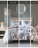 This casual modern bed in a bag set comes with all the essentials you need to complete your bed. Soft brushed microfiber comforter and shams features a pretty mauve, green, and taupe floral design printed on one side against a bright white background, while the coordinating grey diamond design on the sheet set gives the set some simple flair. Shams in set will vary in design. This set includes a comforter, 2 shams (1 in Twin), 1 flat sheet, 1 fitted sheet, and 2 pillowcases (1 in Twin). The fitted sheet fits up to 16" mattress depth (14" in Twin size), perfect for standard mattresses. This set is machine washable in a large capacity commercial washer/dryer for best care.