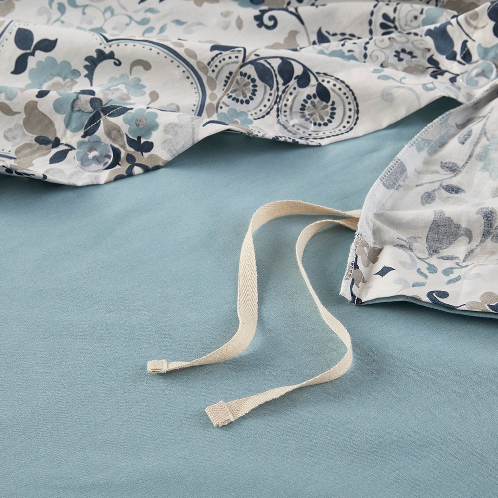 Brielle Blue 3 Piece Floral Printed Cotton Duvet Cover Set King