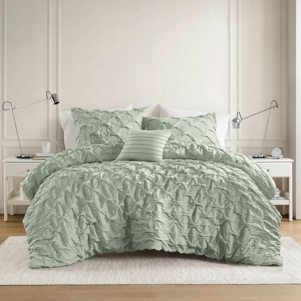 Bailey Green Diamond Pucker Woven Comforter Set King