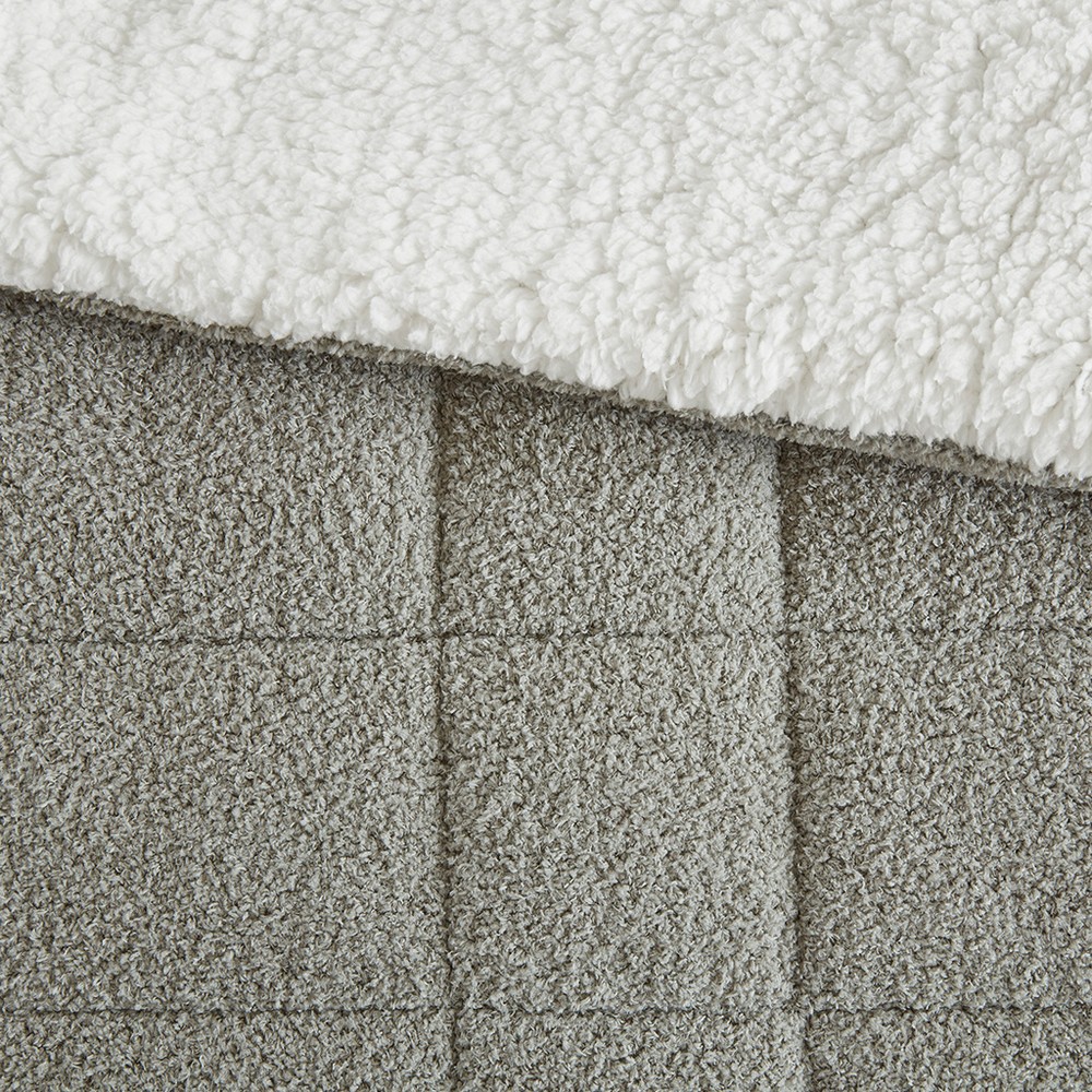 | Madison Park King 1 Comforter: 104"W x 90"L 2 King Shams: 20"W x 36"L (2) Comforter/Sham: 100% polyester faux feathersoft, ivory sherpa reverse Fill: 100% polyester down alternative fiber Casual Style Includes 3 Piece(s) Machine Wash With a buttery soft face and a cozy sherpa reverse, this comforter set will make you want to stay in bed all day. The solid neutral grey tone and classic windowpane quilting make this bed match your decor easily. Its machine washable nature makes maintenance easy, and the OEKO-TEX certified material is safe on skin for durable, long lasting comfort. |