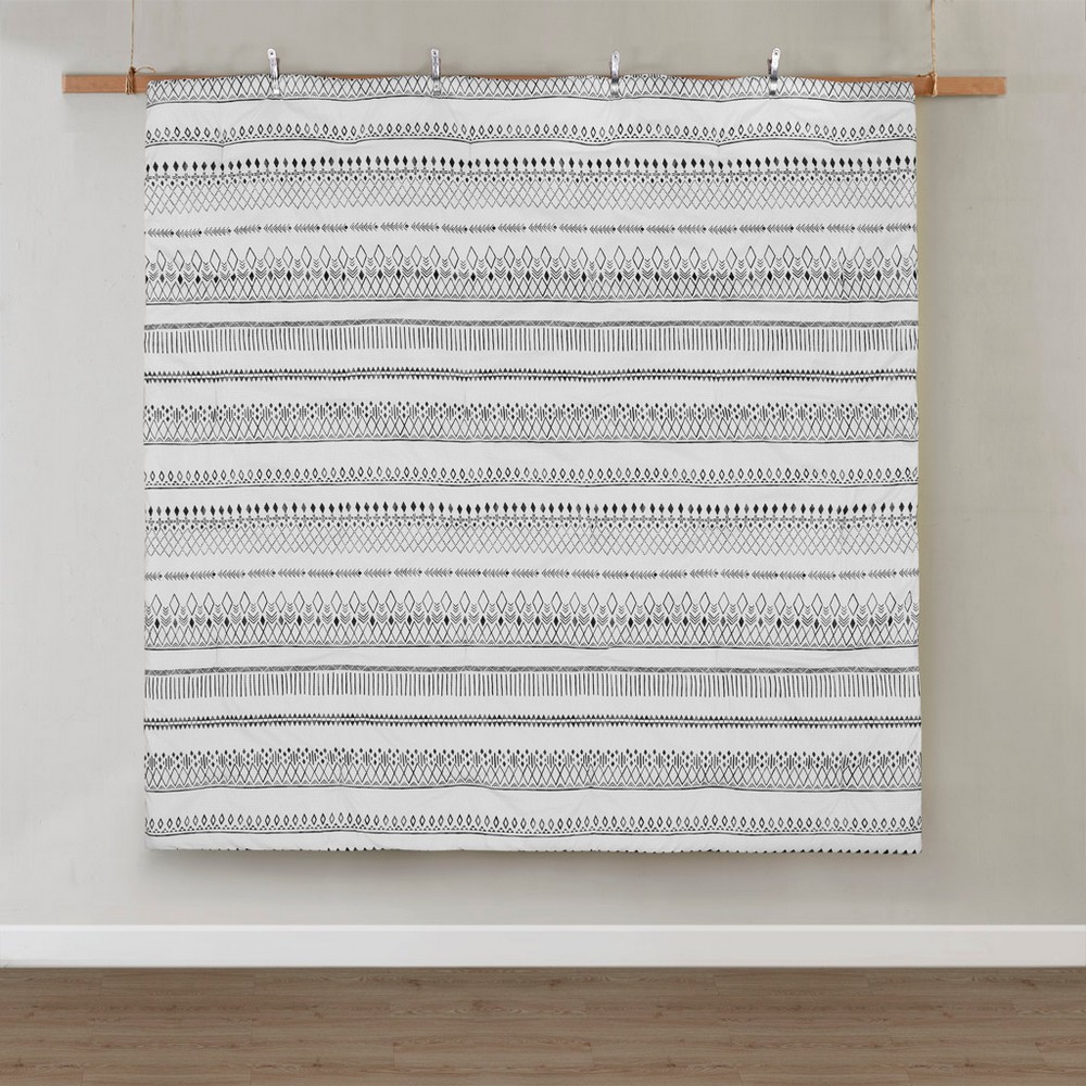 | Madison Park Full/Queen 1 Comforter: 90"W x 90"L 2 Standard Shams: 20"W x 26"L (2) 1 Square Throw Pillow: 16"W x 16"L 1 Oblong Throw Pillow: 12"W x 18"L Comforter/Sham: Printed soft microfiber seersucker face, printed microfiber reverse Fill: 100% polyester fill Pillow: Microfiber cover with polyester fill Fabric: Antimicrobial Treatment Boho Style Includes 5 Piece(s) Machine Washable Spot Clean Pillows Soft and lightweight, the Madison Park Fraser comforter set brings a Southwest inspired touch to your bed. A diamond print in soft black adorns the light ivory face, while a grey diamond print on the reverse adds a complementary farmhouse look. This set includes a comforter, 2 shams, and 2 decorative pillows with tassels or fringe to tie back into the bedding. This reversible comforter also features an antimicrobial treatment to help reduce the growth of odor causing bacteria and keep the fabric lasting longer. This set is machine washable in a large capacity commercial washer/dryer for best care. |