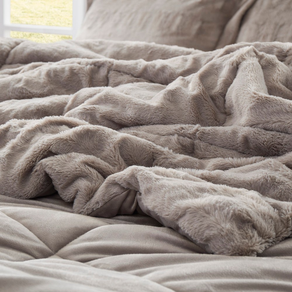 Gia Gray Solid Faux Fur Comforter Mini Set Queen