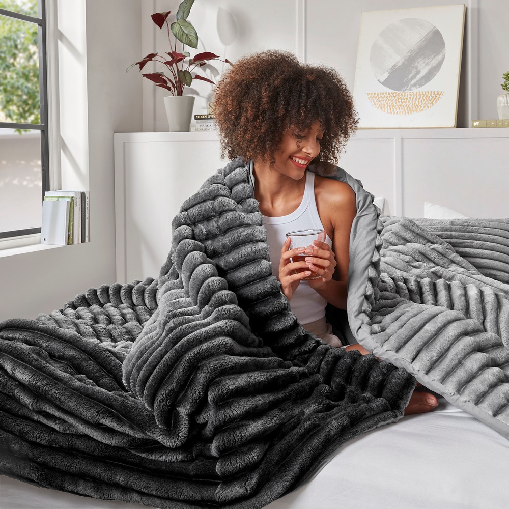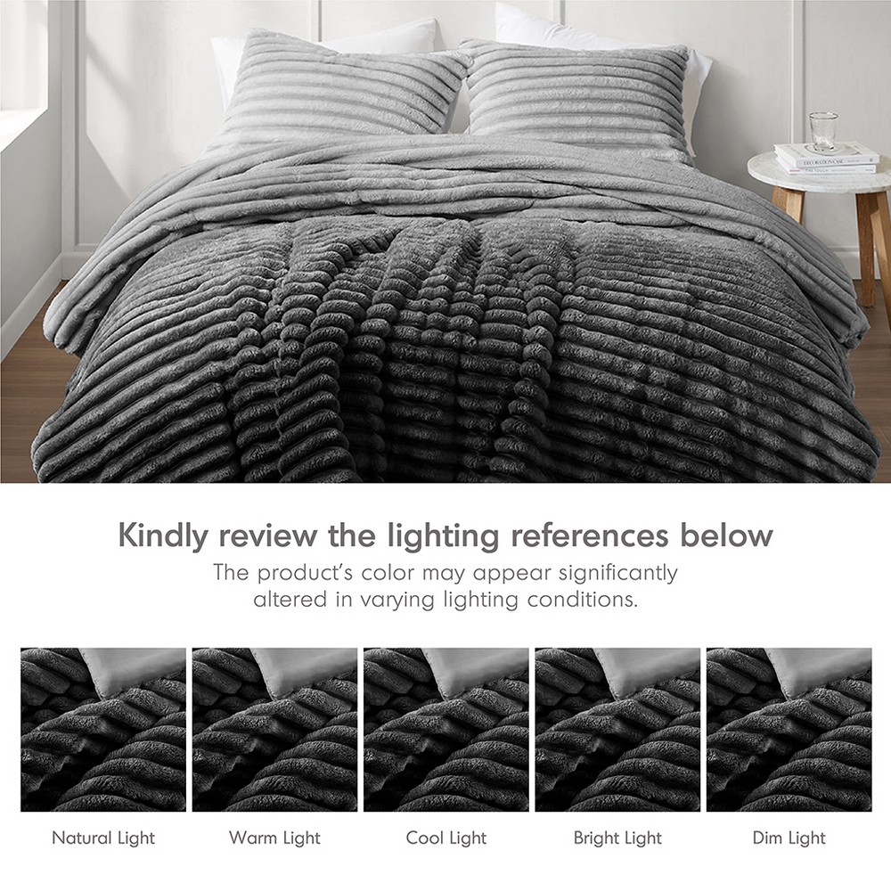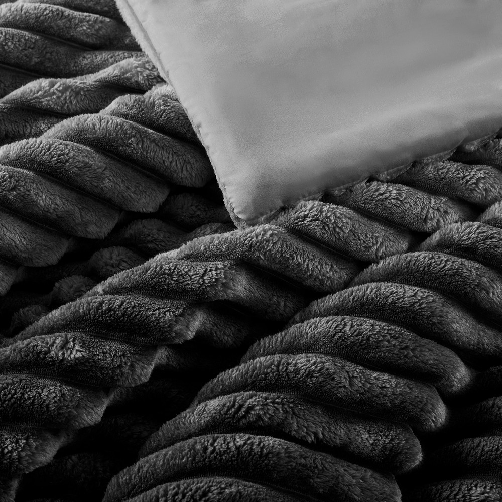 Avril Grey Ombre Fluffy Ribbed Plush Comforter Set King
