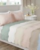 The Madison Park Tuscany 3 Piece Reversible Scalloped Edge Quilt Set is perfect as a layering piece or as an alternative to your comforter for a charming country look. The quilt and shams flaunt a classic stitch pattern with scalloped edges that add an elegant touch to your bedroom. This reversible quilt is filled with cotton filling and features a soft microfiber face, giving your bed a cozy cottage look. This farmhouse-inspired quilt also has an antimicrobial treatment that provides built-in freshness protection, reducing the growth of odor causing bacteria to keep fabric lasting longer.