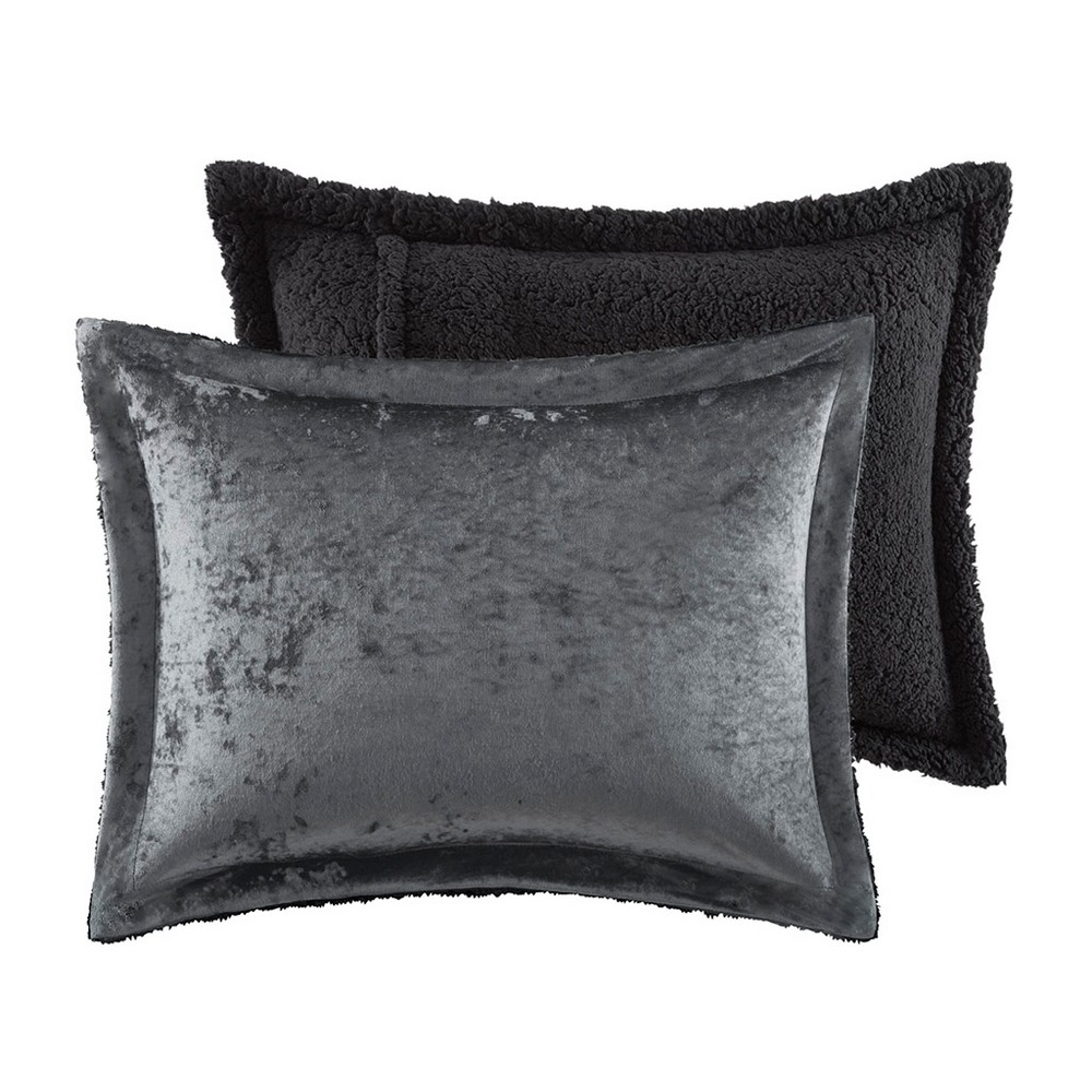 Mira Charcoal Crushed Velvet Sherpa Reversible Comforter Set Queen