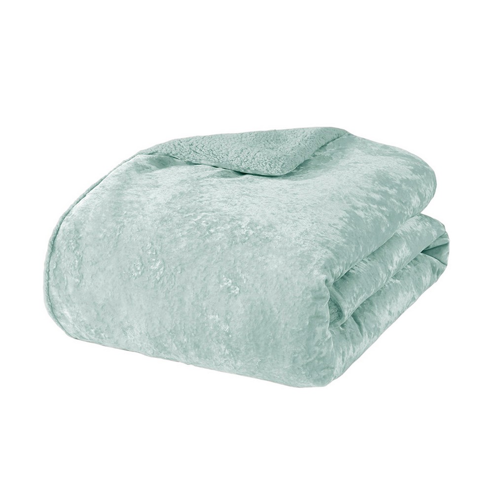 Mira Aqua Crushed Velvet Sherpa Reversible Comforter Set Queen