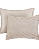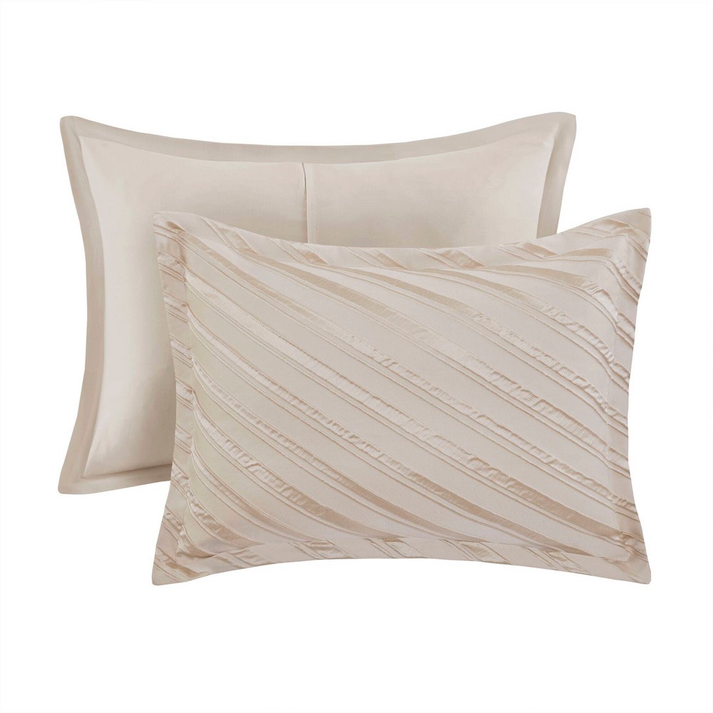 | Madison Park Queen 1 Comforter: 90"W x 90"L 2 Standard Shams: 20"W x 26"L (2) 1 Bedskirt: 60"W x 80"L + 15"D 1 Decorative Pillow: 18"W x 18"L 1 Decorative Pillow: 16"W x 16"L 1 Decorative Pillow: 12"W x 18"L Comforter & Sham: 100%polyester jacquard face and microfiber solid back Fill: Polyester filling Bedskirt: Polyester Pillows: Polyester Glam/Luxury Style Includes 7 Piece(s) Machine Washable, Spot Clean Pillows The 7-Piece Comforter Set radiates timeless elegance with its sophisticated diagonal pattern and raised jacquard texture, creating a beautifully dimensional aesthetic. A luxurious luster enhances its refined, polished finish, elevating your bedroom décor to unmatched sophistication. Showcasing jacquard elegance, this set includes matching shams, intricately embroidered décor pillows, and a tailored bedskirt for a flawlessly cohesive and elegant look. Crafted from premium polyester, the comforter delivers exceptional softness, durability for effortless care. Filled with all-season poly-fill, it offers a lightweight yet fluffy feel, providing cozy warmth and comfort year-round. The anti-clumping bartack design ensures consistent warmth, while OEKO-TEX STANDARD 100 certification guarantees high safety standards, prioritizing your wellness. Conveniently machine washable, the set is easy to maintain, with spot cleaning recommended for the pillows to preserve their delicate craftsmanship. |