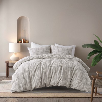 Introducing the new artisanal pattern from INK+IVY, designed to bring a unique touch of craftsmanship to your bedroom. This collection includes 100% cotton duvet cover and 2 matching shams, each with an easy overlap closure. This duvet cover features a beautifully designed jacquard weave with a geometric pattern that adds visual interest and texture. The duvet cover includes four inner ties to keep your insert secure (insert not included) and features a button closure. As an OEKO-TEX certified textile, you can rest assured knowing this product is safe to be in contact with your skin. The entire set is machine washable for easy care (please see the care label for detailed instructions), and we recommend using a commercial washer and dryer to provide ample room for movement and ensure optimal cleaning results.